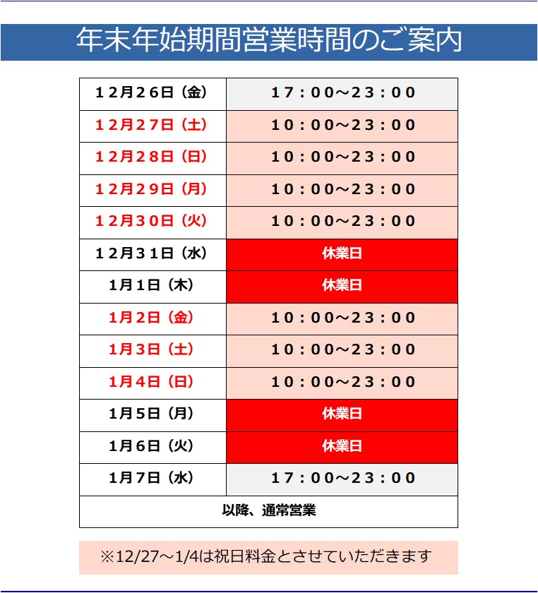・営業時間は以下の通りです。2人席、4人席があります。席を動かすことで大人数でも遊べます。